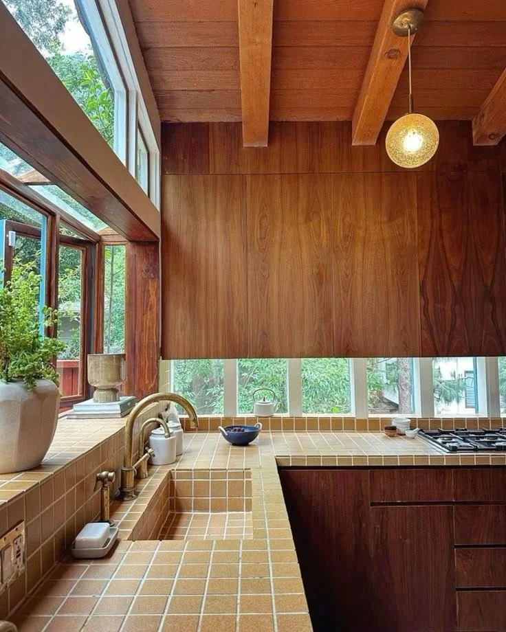 Timber joinery and tiled benchtops were features of many original mid-century kitchens.