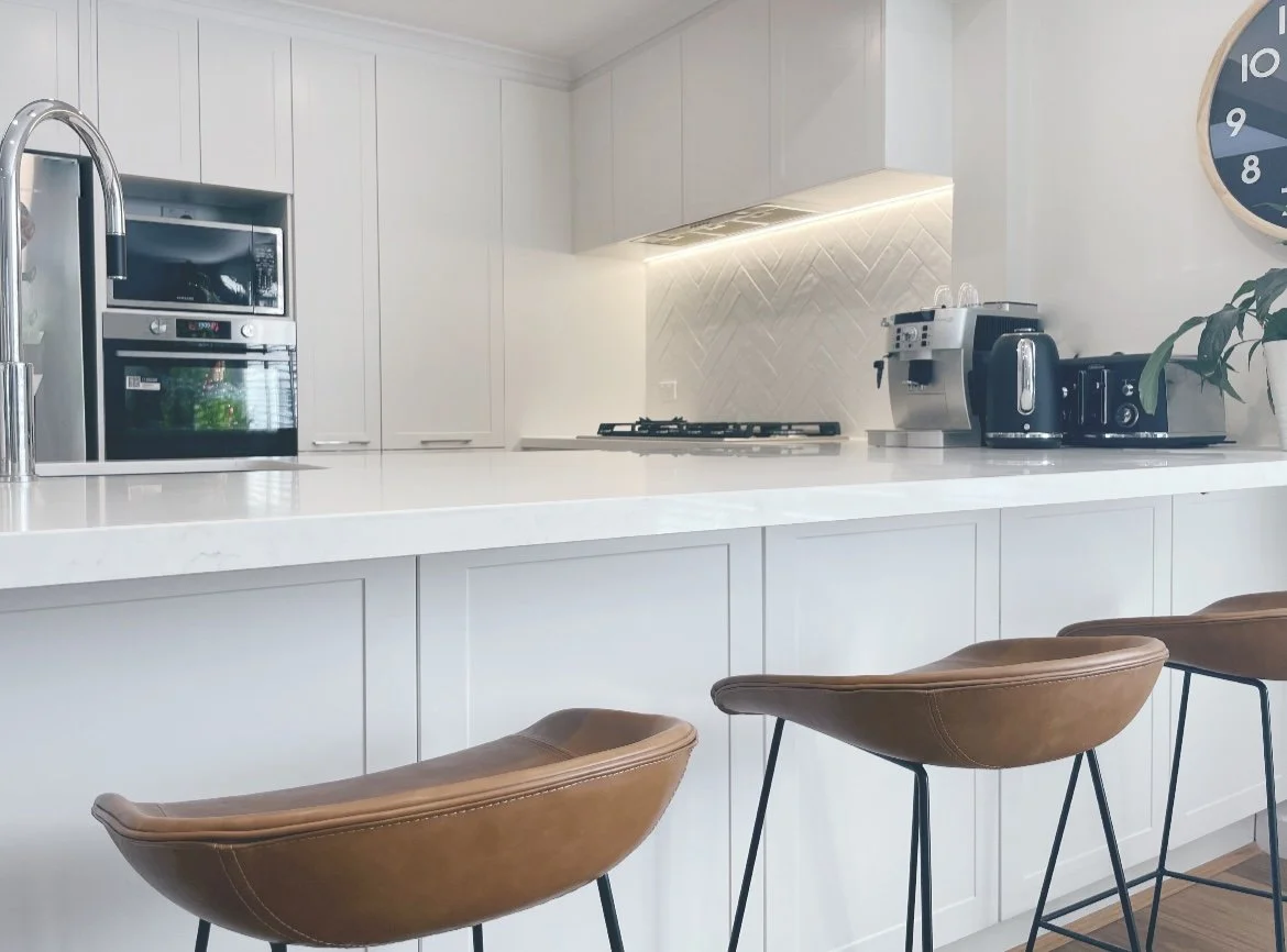 The original kitchen footprint was slightly increased to allow for a larger cooking zone and extended bench for family gatherings. Classic finishes were selected to provide a fresh, sophisticated approach.